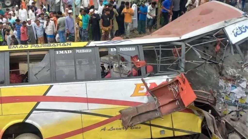 बांग्लादेश में रविवार को एक तेज रफ्तार बस के खाई में गिर जाने से कम से कम...