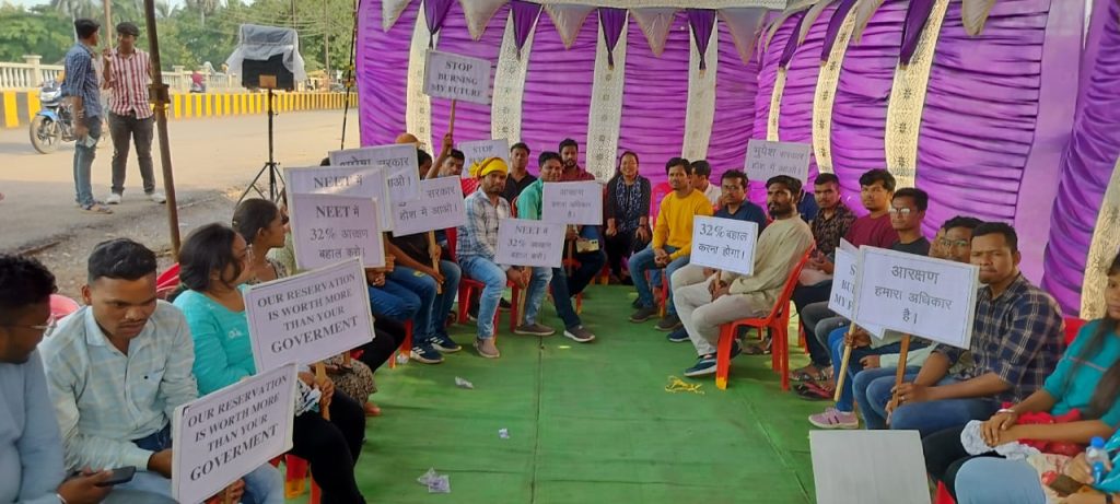 बुढ़ातालाब रायपुर धरना स्थल मे आदिवासी युवा छात्र संघठन छत्तीसगढ़ के नेत्तीत्व मे नीट मे MBBS, BDS...