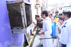 डेंगू के विरुद्ध लड़ाई लड़ने काँग्रेस विधायक विकास उपाध्याय अपने साथियों के साथ लगातर कर रहे लड़ाई खुद एन्टी लार्वा और ब्लीचिंग पावडर का कर रहे छिड़काव, क्षेत्र की जनता के बीच पहुँच डेंगू से लड़ने बताये आवश्यक उपाय एवं सुझाव