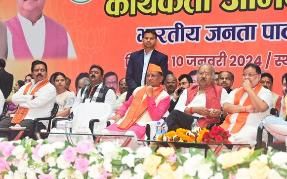 मुख्यमंत्री श्री साय ने कहा कि यह अभिनंदन समारोह वास्तव में हमारे देवतुल्य कार्यकर्ता का वंदन है। आज हम सब लोग अपने देवतुल्य कार्यकर्ताओं का अभिनंदन करने के लिए यहां पर आए हुए हैं। भाजपा कार्यकर्ताओं की पार्टी है और हमारे सभी कार्यकर्ताओं ने 2023 के विधानसभा चुनाव में तन-मन-धन से परिश्रम की पराकाष्ठा करते हुए पार्टी को ऐतिहासिक विजय दिलाई है। श्री साय ने इस मौके पर सबसे पहले मंचस्थ उपमुख्यमंत्री, मंत्रियों, सांसदों, विधायकों व पदाधिकारियों से आग्रह करके अपनी-अपनी जगह पर उठकर कार्यकर्ताओं को नमन कर अभिनंदन किया। श्री साय ने कहा कि भाजपा पर, देश के यशस्वी प्रधानमंत्री नरेंद्र मोदी पर प्रदेश ने बहुत बड़ा विश्वास व्यक्त किया है। भाजपा के संकल्प पत्र ‘मोदी की गारंटी’ पर विश्वास व्यक्त करने के लिए प्रदेश की जनता, मतदाताओं को भी श्री साय ने बधाई देते हुए धन्यवाद ज्ञापित किया। श्री साय ने प्रधानमंत्री श्री मोदी, भाजपा के राष्ट्रीय अध्यक्ष जेपी नड्डा, केंद्रीय गृह मंत्री अमित शाह सहित सभी राष्ट्रीय नेतृत्व और केंद्रीय मंत्री का भी आभार व्यक्त किया जिन्होंने चुनाव के अभियान के दौरान यहां आकर कार्यकर्ताओं का हौसला बढ़ाया श्री साय ने ओमप्रकाश माथुर , शिवप्रकाश, प्रदेश सह प्रभारी नितिन नवीन, चुनाव सह प्रभारी केंद्रीय मंत्री डॉ. मनसुख मांडविया, क्षेत्रीय संगठन महामंत्री अजय जामवाल को भी आभार ज्ञापित किया जिन्होंने संगठनात्मक ढांचे को भरसक मजबूती प्रदान की ।