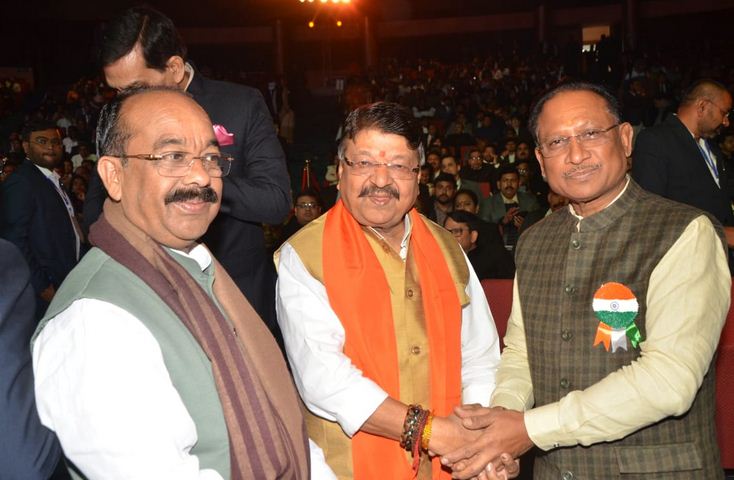 रायपुर। छत्तीसगढ़ के मुख्यमंत्री विष्णुदेव साय से नई दिल्ली के भारत मंडपम में मध्यप्रदेश के नगरीय विकास, आवास और संसदीय कार्यमंत्री कैलाश विजयवर्गीय ने मुलाकात कर शुभकामनाएं दी। इस दौरान उनके साथ उपमुख्यमंत्री अरूण साव भी उपस्थित रहे।