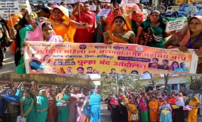 दीपक कौरव, नरसिंहपुर। Narsinghpur जिले में भी स्व सहायता समूहों की महिलाओं ने प्रदर्शन किया। राशि बढ़ाने को लेकर तीन दिवसीय चूल्हा बंद आंदोलन की शुरुआत तेंदूखेड़ा से हो चुकी है। मंगलवार को तेंदूखेड़ा तहसील अंतर्गत स्व सहायता समूह की महिलाओं ने प्रदेशव्यापी तीन दिवसीय चूल्हा बंद आंदोलन कर मुख्यमंत्री के नाम अपनी मांगों को लेकर तहसीलदार को ज्ञापन सौंपा है। साथ ही चेतावनी दी है कि अगर जल्द सरकार ने उनकी मांग नहीं मानी, तो यह आंदोलन और उग्र होगा। इस दौरान समूह की महिलाओं ने नारेबाजी करते हुए रैली भी निकाली।