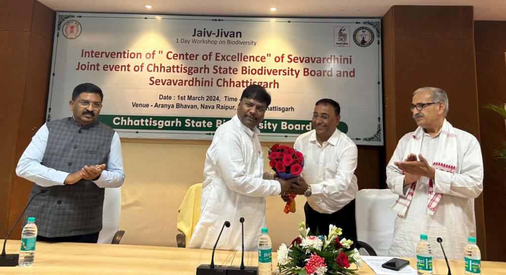 रायपुर. वनों में रहने वाले जनजाति समुदाय ने कभी भी वनों को हानि नहीं पहुंचाई। वनों पर आधारित जीवन होने के बावजूद सीमित संसाधनों में हमारे पूर्वज जीवनयापन करते आये हैं। हमारे वनवासी और जनजाति समुदाय के लोगों ने वनों को सहेजने का कार्य किया है। प्रत्येक जनजाति समाज के घर-बाड़ी में हमें 20-25 अलग-अलग पेड़ पौधे अवश्य मिलेंगे। जनजाति समाज का प्रकृति के प्रति गहरा प्रेम है। यह बात वन मंत्री श्री केदार कश्यप ने नवा रायपुर स्थित अरण्य भवन में छत्तीसगढ़ बायो डायवर्सिटी बोर्ड एवं सेवावर्धिनी छत्तीसगढ़ के द्वारा ‘जनजाति क्षेत्र में जैव विविधता संरक्षण एवं संवर्धन‘ विषय पर आयोजित कार्यशाला में कही।
