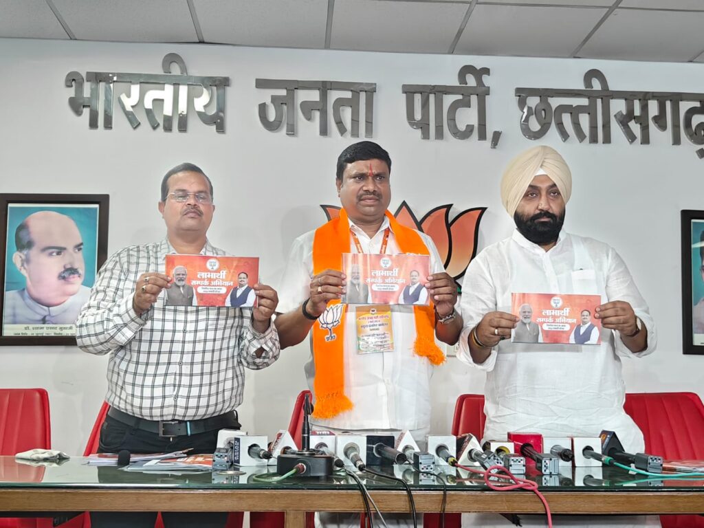 भाजपा प्रदेश महामंत्री व अभियान के प्रदेश संयोजक श्री भारती ने कुशाभाऊ ठाकरे परिसर स्थित प्रदेश भाजपा कार्यालय में पत्रकार वार्ता में कहा कि देश में प्रधानमंत्री नरेंद्र मोदी के नेतृत्व में सन 2014 में केंद्र में सरकार बनी। शपथ ग्रहण के बाद प्रधानमंत्री श्री मोदी ने कहा था कि उनकी सरकार गरीबों के कल्याण के लिए संकल्पित सरकार होगी और पिछले 10 वर्षों के कार्यकाल में निचले स्तर तक गाँव-गरीबों तक केंद्र सरकार की योजनाओं को पहुँचाने का काम हुआ है। पूरे देश में हर वर्ग, हर समाज के लोग केंद्र सरकार की योजनाओं के लाभार्थी हैं। श्री भारती ने कहा कि इसी के तथ्य हमने पूरे देश में संगृहीत किए हैं। लगभग 25 करोड़ डाटा हमने एकत्रित किया है। इस एकीकृत कई योजनाओं का 25 करोड़ हितग्राहियों ने लाभ लिया है। इनमें से 6 करोड़ हितग्राहियों को चिह्नांकित करके डाटा तैयार किया गया है। छत्तीसगढ़ में ऐसे 40 लाख लाभार्थियों का डाटा हमारे पास उपलब्ध है। इन 40 लाख लाभार्थियों से सम्पर्क का अभियान प्रदेशभर में जारी है।