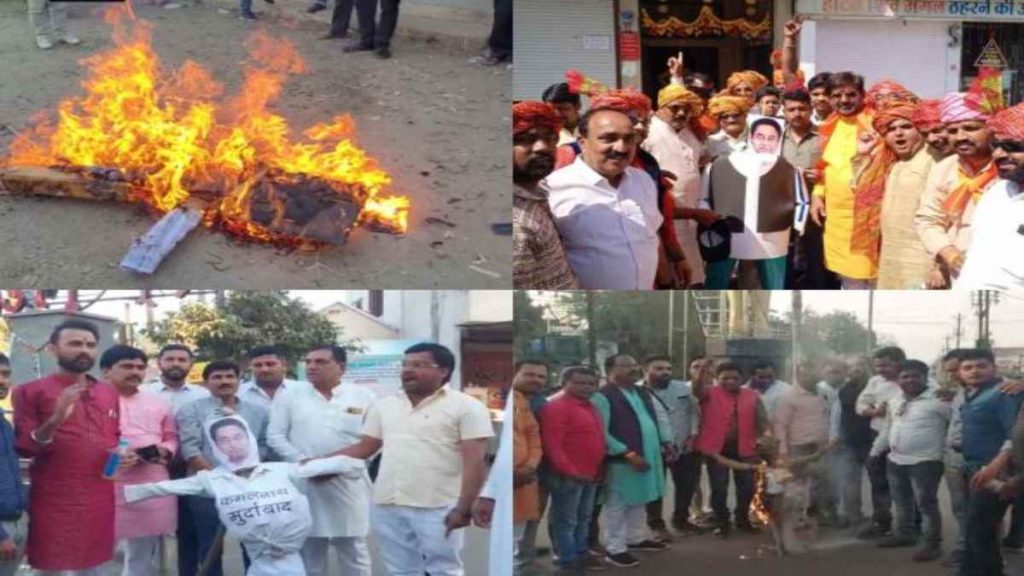 भोपाल। मध्यप्रदेश के पूर्व मुख्यमंत्री और पीसीसी चीफ कमलनाथ के बयान का जगह-जगह विरोध किया जा रहा है। एमपी को मदिरा प्रदेश कहे जाने वाले बयान से भाजपा में काफी नाराजगी है। इसी के चलते प्रदेश भर में विरोध करते हुए उनके खिलाफ प्रदर्शन किया जा रहा है। कई जिलों में भाजपाइयों ने पूर्व सीएम का पुतला भी फूंका है।