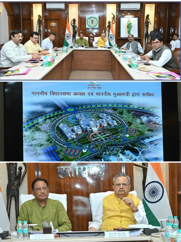 रायपुर, आज मुख्यमंत्री निवास कार्यालय में विधान सभा अध्यक्ष डॉ. रमन सिंह के सभापतित्व में नवीन विधान सभा निर्माण संबंधी समिति की बैठक संपन्न हुई। इस बैठक में नवा रायपुर (अटल नगर) में निर्माणाधीन नवीन विधानसभा भवन पर हुई चर्चा के दौरान मुख्य अभियंता द्वारा बताया गया कि नवीन विधान सभा का वर्क आर्डर अगस्त, 2022 को दिया गया था, कार्य पूर्ण होने की अवधि 24 माह, दिनांक 31/08/2024 तक निर्धारित किया गया है। जिसमें लगभग 68 प्रतिशत कार्य पूर्ण हो चुका है और जून 2025 तक विधानसभा परिसर का कार्य पूर्ण होने की संभावना है । विधानसभा भवन की वर्तमान स्थिति और कार्य की गति को लेकर विधानसभा अध्यक्ष द्वारा विस्तृत चर्चा की गयी, जिसमें बताया गया कि छत्तीसगढ़ का नवीन विधानसभा भवन पूरे देश में अपने तरह की एक आदर्श विधानसभा होगी। इस परिसर में पर्यावरण को संरक्षित रखने के लिए वृक्षारोपण और सौर ऊर्जा को बढ़ावा देकर पूरे परिसर को सौर ऊर्जा से संचालित किया जाना सुनिश्चित किया गया है। इसके साथ ही वर्षा जल का पूर्ण उपयोग सुनिश्चित करते हुए वाटर हार्वेस्टिंग कार्य, संपूर्ण भवन के प्रत्येक कार्य में निर्माण सामग्री सहित, उपयोग में आने वाली समस्त सामग्रियों में उच्च गुणवत्तायुक्त नवीन उत्पाद व टेक्नोलॉजी का समावेश व समुचित उपयोग सुनिश्चित करते हुए ऐसा भवन विकसित किए जाने के निर्देश दिए गए हैं, जो आने वाले 100 वर्षों की जरूरत की पूर्ति करने में सक्षम हो ।