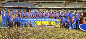 अर्जुन तिवारी ने नाबाद 65 रनों का योगदान दिया, जबकि अमनदीप खरे ने 19 रन बनाएं। वहीं हर्ष शर्मा न 6 चौके और 1 छक्के की मदद से 57 रन बनाएं। जबकि डाकेश कुमार ने 12 रन का योगदान दिया। इस तरह अनुज तिवारी और हर्ष शर्मा ने जीत के लिए आवश्यक लक्ष्य का पीछा करते हुए 16.1 ओवर में 157 रन बनाकर जीत दिला दी। बता दें कि छत्तीसगढ़ क्रिकेट प्रीमियर लीग की शुरुआत 7 जून 2024 को शुरु हुई थी, जिसमें 8 टीमों ने हिस्सा लिया और रोजाना दो मैचे खेले गए। वहीं परसदा स्टेडियम में फायनल मैच को देखने के लिए छत्तीसगढ़ शासन में उप-मुख्यमंत्री अरुण साव पहुंचे और मैच का आनंद लिया, जबकि छत्तीसगढ़ क्रिकेट संघ के अध्यक्ष की भी मौजूदगी रही। मैचे के दौरान दर्शक काफी संख्या में पहुंचे और मैच का आनंद लिया। फाइनल मैच में शुरुआत से ही दोनों टीमों के बीच कांटे की टक्कर रहीं, अंत: रायपुर रायनोस ने 8 विकेट से जीत दर्ज कर ट्रॉफी अपने नाम कर ली।