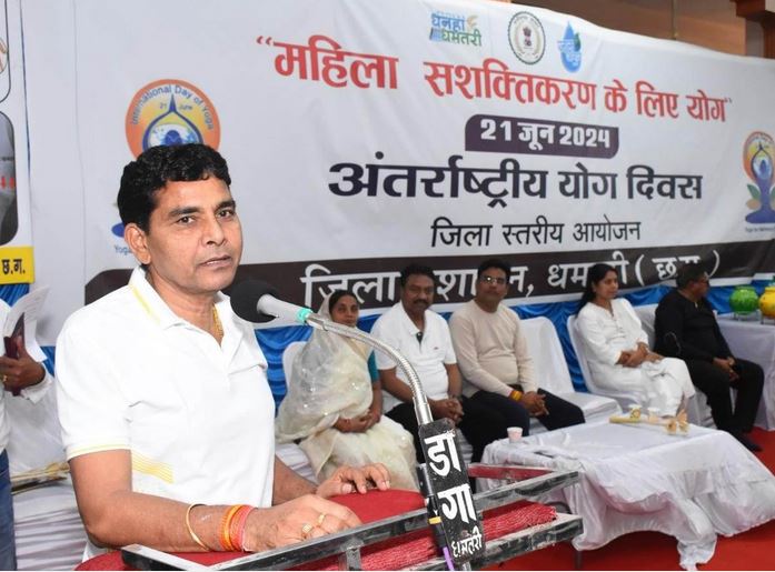 योग के मामले में आज हमारा देश शुरू से ही विश्व गुरू रहा है। योग से शारीरिक एवं मानसिक शांति मिलती है। उन्होंने सभी से आव्हान किया कि आप सभी योग को अपनी जीवन शैली में शामिल करें और स्वस्थ रहे-मस्त रहें। गौरतलब है कि स्वयं और समाज के लिए योग थीम पर आज विश्व भर में अंतर्राष्ट्रीय योग दिवस मनाया जा रहा है। इस अवसर पर विधायक धमतरी श्री ओंकार साहू, महापौर नगर निगम श्री विजय देवांगन, पूर्व विधायक श्रीमती रंजना साहू सहित कलेक्टर सुश्री नम्रता गांधी, पुलिस अधीक्षक श्री आंजनेय वैष्णव और अन्य अधिकारी तथा बड़ी संख्या में शहरवासी उपस्थित रहे।