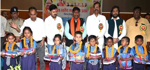 रायपुर । वन-जलवायु परिवर्तन मंत्री केदार कश्यप मंगलवार को रायपुरा स्थित पंडित गिरिजा शंकर मिश्र उच्चतर माध्यमिक विद्यालय में आयोजित जिला स्तरीय शाला प्रवेश उत्सव में शामिल हुए। उन्होंने नौनिहालों को तिलक लगाकर और मिठाई खिलाकर शाला प्रवेश कराया। उन्होंने इस मौके पर बच्चों को शाला गणवेश तथा पाठ्यसामग्री वितरण भी किया। उन्होंने छात्राओं को सरस्वती सायकल योजना के तहत सायकल प्रदान किया। मंत्री कश्यप ने इस दौरान विद्यार्थियों द्वारा लगाए गए नवाचार मॉडल प्रदर्शनी का भी अवलोकन किया।