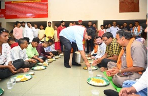 रायपुर। उपमुख्यमंत्री एवं गृहमंत्री विजय शर्मा ने अमरकंटक के मृत्युंजय आश्रम में कांवड़ियों के लिए की गई व्यवस्थाओं का निरीक्षण किया और स्वयं कांवड़ियों के साथ बैठकर भोजन भी किया। उपमुख्यमंत्री श्री शर्मा ने कांवड़ियों को भोजन का वितरण भी किया और उनके साथ पवित्र सावन माह की इस महत्वपूर्ण यात्रा में भागीदारी की। उपमुख्यमंत्री कल सुबह अमरकंटक में नर्मदा मैय्या मंदिर और जलेश्वर महादेव मंदिर पहुँचकर पूजा अर्चना करेंगे।