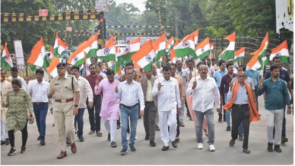 रायपुर। हर घर तिरंगा अभियान के तहत कोरबा जिले में देशभक्ति से प्रेरित विभिन्न गतिविधियों का आयोजन किया जा रहा है। इसी कड़ी में सोमवार को वाणिज्य उद्योग व श्रम मंत्री लखन लाल देवांगन की उपस्थिति में कोरबा नगरीय क्षेत्र के घण्टाघर में तिरंगा यात्रा का आयोजन किया गया। उद्योग मंत्री देवांगन ने तिरंगा यात्रा को हरी झंडी दिखाकर रवाना किया। यह रैली घंटाघर स्थित ओपन थियेटर मैदान से प्रारम्भ होकर शहर के प्रमुख चौक चौराहों से होते हुए सीएसईबी चौक स्थित एसईसीएल फुटबॉल ग्राउंड में समाप्त हुई।