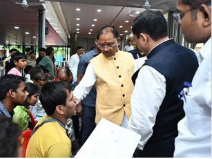 रायपुर । मुख्यमंत्री निवास में आयोजित जनदर्शन में मुख्यमंत्री विष्णुदेव साय ने दिव्यांग कलाकार की मांग चंद मिनटों में पूरी कर दी। दिव्यांग ने वाद्ययंत्र खरीदने के लिए मुख्यमंत्री के समक्ष सहायता राशि की मांग की। उन्होंने तत्काल 15 हजार रूपए का चेक प्रदान किया। इससे दिव्यांग के चेहरे पर मुस्कान आ गई और मुख्यमंत्री का धन्यवाद किया।