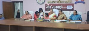 रायपुर / छत्तीसगढ़ राज्य महिला आयोग की अध्यक्ष डॉ. किरणमयी नायक एवं सदस्यगणों श्रीमती सरला कोसरिया, श्रीमती लक्ष्मी वर्मा, श्रीमती ओजस्वी मंडावी एवं सुश्री दीपिका शोरी ने आज छत्तीसगढ़ राज्य महिला आयोग के कार्यालय रायपुर में महिला उत्पीड़न से संबंधित प्रकरणों पर सुनवाई की। आयोग की अध्यक्ष डॉ. किरणमयी नायक की अध्यक्षता में प्रदेश स्तर पर आज 294…. वी. सुनवाई हुई। रायपुर जिले में 140 वी. जनसुनवाई।