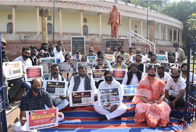 रायपुर। प्रदेश के सभी जिला मुख्यालयों में जिला/शहर कांग्रेस कमेटी के माध्यम से 1 घंटे का सरकार की बदहाली को लेकर पोस्टर प्रदर्शन किया गया, जिसके तहत शहर के मुख्य चौक-चौराहों पर कांग्रेसजन भाजपा सरकार के विभिन्न विफलताओं बलौदाबाजार अग्निकांड, लोहारीडीह हत्याकांड, बलरामपुर पुलिस अभिरक्षा में हुयी मौत, आदिवासी फर्जी मुठभेड़, हसदेव जंगल कटाई, महिलाओं के साथ हो रही अनाचार, प्रदेश में बदहाल कानून-व्यवस्था जैसे प्रमुख मुद्दों का पोस्टर बनाकर मौन-प्रदर्शन करते हुए आम जनता का ध्यान आकृष्ट कराया गया।