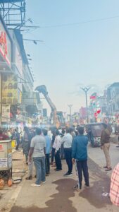 से सड़क पर लगाए गए लगभग 25 एंगल्स हटाए 0 रायपुर – आज नगर निगम रायपुर के आयुक्त श्री अबिनाश मिश्रा के निर्देश पर नगर निगम जोन 4 नगर निवेश विभाग ने निगम मुख्यालय उड़न दस्ता एवं यातायात पुलिस के साथ मिलकर जोन 4 जोन कमिश्नर श्री अरुण ध्रुव के नेतृत्व उप अभियंता श्री नवीन वर्मा की उपस्थिति में जनहित में जन सुविधा हेतु सुगम यातायात देने जोन 4 क्षेत्र में बैजनाथपारा मुख्य मार्ग पर दुकानदारों द्वारा बिना अनुमति अवैध रूप से सड़क को घेरकर सामने लगाए गए लगभग 25 एंगल्स को अभियान चलाकर हटाया, जिससे मुख्य मार्ग का यातायात सुगम बन गया एवं नागरिकों को तत्काल राहत मिली. अभियान जनहित में जन सुविधा हेतु सुगम यातायात देने आगे भी जारी रहेगा.
