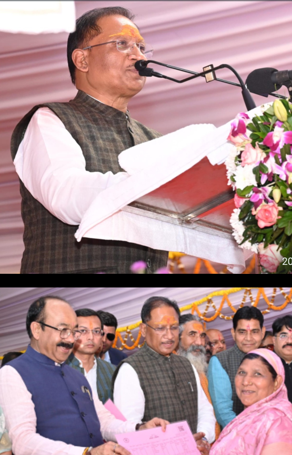कार्यक्रम में उप मुख्यमंत्री श्री अरूण साव ने कहा कि मुख्यमंत्री श्री विष्णु देव साय के नेतृत्व में प्रदेश में विकास हुआ है। उन्होंने कहा कि मोदी जी की गारंटी और विष्णु के सुशासन में सभी वर्गों को विभिन्न योजनाओं का लाभ बराबर मिल रहा है। श्री साव ने कहा कि शहर से लेकर दूरस्थ ग्रामों तक विकास हो रहा है। उन्होंने कहा कि शासन की महतारी वंदन योजना, प्रधानमंत्री आवास योजना, प्रधानमंत्री जनमन योजना, आयुष्मान भारत योजना, स्वामित्व योजना इत्यादि का लाभ लोग उठा रहे हैं। प्रभारी मंत्री श्री टंकराम वर्मा ने स्वामित्व योजना अंतर्गत जिले में अधिकार अभिलेखों के वितरण पर संबंधित हितग्राहियों को बधाई दी। उन्होंने कहा कि मुख्यमंत्री श्री विष्णु देव साय के नेतृत्व में विशेष पिछड़ी जनजाति कमार हितग्राहियों को शासन की जनकल्याणकारी योजनाओं से लाभान्वित किया जा रहा है। इसके अलावा प्रदेश सरकार के एक साल सुशासन में योजनाओं का क्रियान्वयन किया जा रहा है।