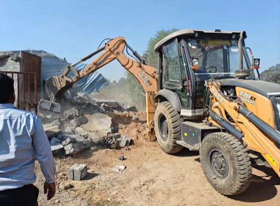 तहसीलदार द्वारा इसकी जांच के उपरांत अपने न्यायालय से बेजाकब्जा हटाने का आदेश पारित किया गया था। आज माना थाने से पुलिस बल, राजस्व निरीक्षक और हल्का पटवारी की मौजूदगी में चार निर्माणाधीन मकानों को जेसीबी मशीन से तोड़कर शासकीय भूमि से बेजाकब्जा हटा दिया गया है।