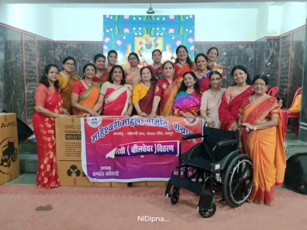 माहेश्वरी महिला समिति, गोपाल मंदिर, रायपुर द्वारा भव्य सुंदरकांड* का आयोजन, दिनांक 31 मई ,दिन शनिवार,दोपहर 3:00 बजे से किया गया। श्री मनोज जी शर्मा की भजन मंडली द्वारा भक्तिपूर्ण व संगीतमय ढंग से किया गया। जिसका सभी भक्तों ने भरपूर आनंद लिया एवं सभी भगवान की भक्ति में डूबे दिखे। आरती पश्चात, अखिल भारतीय माहेश्वरी महिला संगठन द्वारा आया प्रोजेक्ट व्हीलचेयर डोनेशन का भी आयोजन हुआ । *माहेश्वरी महिला समिति गोपाल मंदिर द्वारा 23 व्हील चेयर दी गई।* इस आयोजन में राष्ट्रीय महामंत्राणी ज्योति जी राठी, मध्यांचल सह प्रभारी प्रतिभा जी नत्थनी एवं अध्यक्ष प्रगाति कोठारी सचिव कल्पना राठी व कार्यकारिणी सदस्य माधुरिका नत्थानी, शशि बागड़ी, रमा मल, संगीता चांडक, शशिकला काबरा, शशि शारदा, सुनीता लड्ढा, मधु राठी,कविता दम्माणी, नीता लखोटिया,नीना राठी, शशि आर.मोहता व गोपाल मंदिर की सदस्याये एवं महेश सभा अध्यक्ष श्री राजेश जी तापड़िया,भूतपूर्व अध्यक्ष श्री संपत जी काबरा,