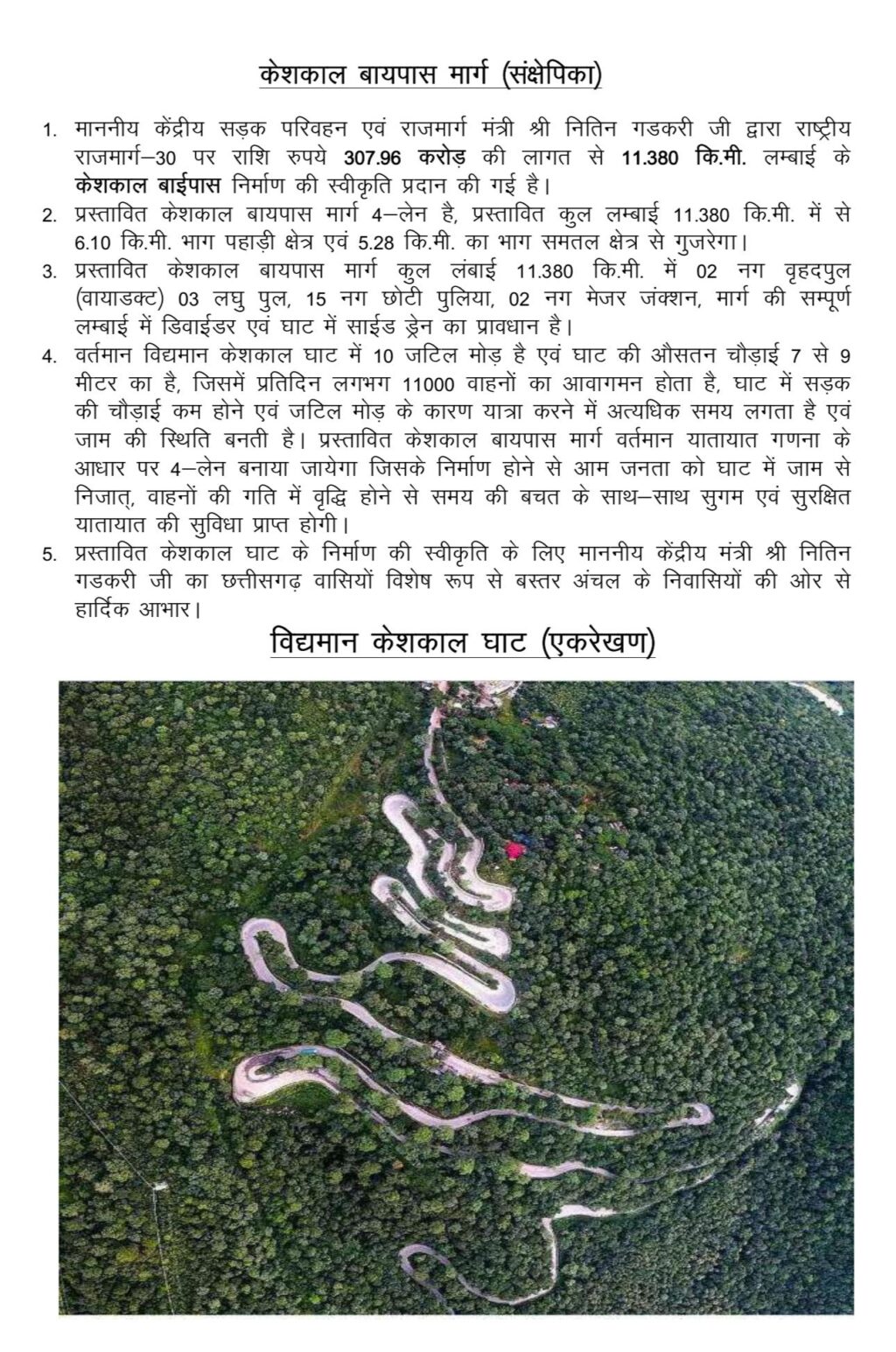 11.38 किलोमीटर लंबे इस बाई पास के लिए लगभग 308 करोड़ की स्वीकृति देकर केंद्र सरकार ने स्पष्ट कर दिया है बस्तर में हम नक्सलवाद का खात्मा और विकास की गंगा साथ बहाएंगे।