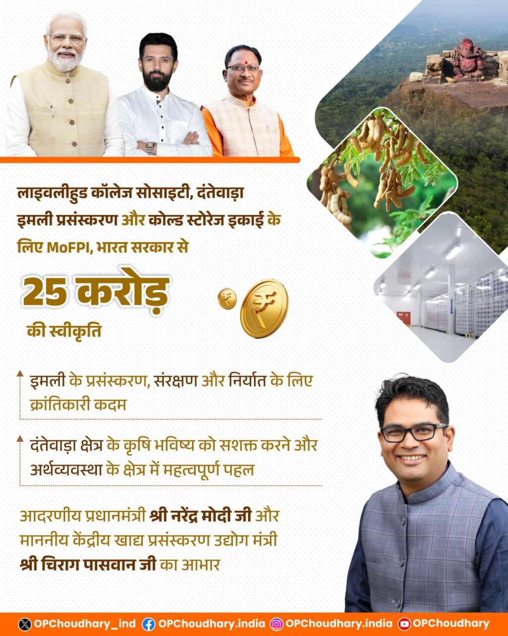 आदरणीय प्रधानमंत्री श्री नरेन्द्र मोदी जी और माननीय खाद्य प्रसंस्करण उद्योग मंत्री श्री चिराग पासवान जी को उनके दूरदर्शी नेतृत्व और दंतेवाड़ा क्षेत्र के प्रति समर्पण के लिए सादर धन्यवाद।