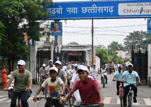 रायपुर. 31 अगस्त 2025. राष्ट्रीय खेल दिवस के तहत आज बिलासपुर में स्कूली छात्र-छात्राओं और 300 से अधिक खिलाड़ियों ने साइकल रैली निकाली। भारत सरकार के फिट इंडिया कार्यक्रम “सन्डेस ऑन सायकल” (Sundays on Cycle) के तहत पीएमश्री स्वामी आत्मांनद विद्यालय नूतन चौक सरकंडा से स्वर्गीय बी.आर. यादव राज्य खेल प्रशिक्षण केन्द्र बहतराई तक यह रैली निकाली गई। पूर्व ओलम्पियन एवं हॉकी के हेड कोच श्री अजीत इमानुएल लकड़ा और अंतरराष्ट्रीय कबड्डी खिलाडी संजू देवी ने हरी झंडी दिखाकर रैली को रवाना किया।