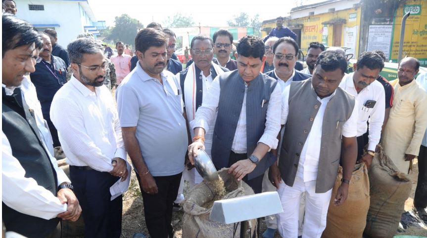 रायपुर, राजस्व मंत्री श्री टंकराम वर्मा ने आज कांकेर जिले के धान खरीदी केंद्र मालगांव पहुंचकर समर्थन मूल्य पर धान खरीदी का विधिवत शुभारंभ किया। उन्होंने धान खरीदी केन्द्र में इलेक्ट्रॉनिक तौल मशीन एवं विक्रय के लिए किसान द्वारा लाए गए धान की पारंपरिक रीति-रिवाज व परंपरानुसार पूजा अर्चना कर धान खरीदी की शुरूआत की। इस अवसर पर कांकेर विधायक श्री आशाराम नेताम, छत्तीसगढ़ राज्य मछुआ कल्याण बोर्ड के अध्यक्ष श्री भरत मटियारा, जिला पंचायत के उपाध्यक्ष श्रीमती तारा ठाकुर, पूर्व विधायक श्रीमती सुमित्रा मारकोले, जिले के कलेक्टर श्री निलेश कुमार महादेव क्षीरसागर, सीईओ श्री हरेश मण्डावी, एसडीएम कांकेर श्री अरूण वर्मा सहित श्री महेश जैन, श्री सतीश लाटिया, श्री बृजेश चौहान भी उपस्थित थे। धान खरीदी केन्द्र मालगांव में कृषक तीजूराम उसेण्डी के धान की तौल कराकर खरीदी कार्य की शुरूआत की गई।
