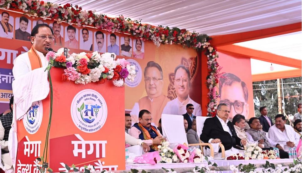 रायपुर, मुख्यमंत्री श्री विष्णु देव साय ने परम् पूज्य बाबा गुरु घासीदास जी की जयंती के पावन अवसर पर राजधानी रायपुर में मानव सेवा, सामाजिक समरसता और स्वास्थ्य जागरूकता के लिए आयुर्वेदिक कॉलेज परिसर में 18 से 22 दिसंबर तक आयोजित 5 दिवसीय निःशुल्क मेगा हेल्थ कैम्प 2025 का भव्य शुभारंभ किया।
