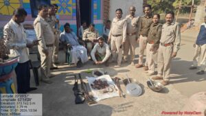 गरियाबंद क्षेत्र में वन विभाग को प्राप्त गोपनीय सूचना के आधार पर 01 जनवरी को परिक्षेत्र परसुली अंतर्गत ग्राम कोपेकसा में बड़ी कार्रवाई की गई। सर्च वारंट के तहत सहायक वन संरक्षक श्री नदीम कृष्णा बरिहा, श्री आर.के. साहू एवं श्री शिव प्रसाद ध्रुव के संयुक्त नेतृत्व में ग्रामीण नंदू, पिता महेतर ध्रुव के निवास स्थान पर छापामार कार्रवाई की गई। तलाशी के दौरान आरोपी के घर से भारी मात्रा में वन्यजीव का कच्चा तथा पका हुआ मांस बरामद किया गया। इसके साथ ही एक लाइसेंसी भरमार बंदूक, एक एयर गन तथा अन्य हथियार भी जब्त किए गए। बरामद मांस के नमूनों को जांच हेतु भेज दिया गया है।