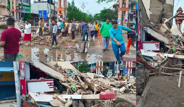 बिलासपुर। मंगला चौक पर स्थित श्रीराम मेडिकल दुकान की तीन मंजिला बिल्डिंग शनिवार की सुबह 6:40 बजे अचानक भरभरा गिर गई। इस घटना के बाद वहां हड़कंप मच गया। बिल्डिंग से सटाकर नगर निगम नाला निर्माण करा रहा है। बिना मापदंड व सुरक्षा के पुख्ता इंतजाम किए इस निर्माण को ही घटना की मुख्य वजह बताई जा रही है। घटना के बाद मंगला चौक व्यापारी संघ के अलावा आसपास के लोगों में भारी आक्रोश देखा गया। घटना में फिलहाल किसी के हताहत होने की सूचना नहीं है, लेकिन, घटना के बाद दहशत का माहौल है। लोग यहीं सोच रहे है कि यदि घटना 10 बजे के बाद होती तो शायद किसी की जान भी जा सकती थी। मुख्य मार्ग व चौक होने के कारण यहां सुबह 10 बजे के बाद भारी भीड़ नजर आने लगती है।