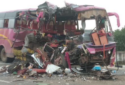 छत्रपति संभाजीनगर, महाराष्ट्र में मलकापुर-धुले राष्ट्रीय राजमार्ग पर मलकापुर के पास शनिवार की सुबह दो बसों की टक्कर से छह अमरनाथ यात्रियों की मौत हो गई और 21 अन्य घायल हो गए।