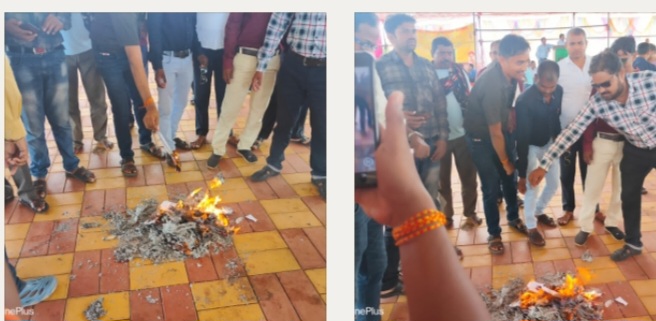 छत्तीसगढ़ सहायक शिक्षक समग्र शिक्षक फेडरेशन आज धरना स्थल माना तूता रायपुर में शासन द्वारा निकाले गए सरकारी फरमान के जवाब में आदेश की प्रति को जलाया बता दें कि छत्तीसगढ़ के तमाम जिलों से छत्तीसगढ़ सहायक शिक्षक तथा समग्र शिक्षक फेडरेशन के सदस्य आदेश नोटिस को कार्यकर्ता ने अपने-अपने जिलों में नोटिस को आग में आहुति दी हम आपको कुछ तस्वीर दंतेवाड़ा व सुकमा जिला के शिक्षक कार्यकर्ता के दिखाते हैं की शासन द्वारा निकाली गई फरमान के प्रति को जलाते हुए देख पा रहे हैं और सरकार द्वारा 15 अगस्त को सौगात दिए जाने का वादा खिलाफ को लेकर के जमकर सरकार के खिलाफ हल्ला बोलते नजर आ रहे हैं अब जो उम्मीद 15 अगस्त के घोषणा की थी वह भी उम्मीद अब टूट चुकी है यह लोग लगातार वेतन विसंगति समय पर वेतन दिए जाने तथा नियमितीकरण को लेकर के लगातार माना तूता धरना स्थल मैदान छत्तीसगढ़ की राजधानी में धरना देते आ रहे है सरकार के सूत्रों द्वारा इनको उम्मीदें जताई जा रही थी परंतु राज्य की सरकार ने इनके साथ केवल वादाखिलाफी की ऐसा छत्तीसगढ़ के सहायक तथा समग्र शिक्षक फेडरेशन का कहना है चुनाव करीब है कुछ महीनो बाद ही छत्तीसगढ़ के 90 विधानसभा में सभी दल के कैंडिडेट अपने-अपने किस्मत आजमाने को चुनावी रण में उतरेंगे छत्तीसगढ़ के 90 विधानसभा में भूपेश की रणनीति कितनी कारगर होगी यह तो भविष्य ही तय करेगा क्योंकि आम आदमी पार्टी के सुप्रीमो केजरीवाल ने अनियमित कर्मचारी संविदा कर्मचारी सहायक शिक्षक समग्र शिक्षक फेडरेशन अतिथि शिक्षक एवं राज्य के तमाम विभागों के कर्मचारियों को नियमितीकरण तथा जॉब गारंटी की गारंटी खुले मंच से दे डाली वही बीजेपी ने भी अपने कैंडिडेटों की लिस्ट जारी कर दी साथ ही वादों की झड़ी भी लगा दी अब इस चुनावी रण में देखना है कि जीत का ताज किसके सर पर होगा और कौन अपने वादो पर खरा उतरता है यह तो आने वाले समय में छत्तीसगढ़ की जनता तय करेगी तथा आगामी पंचवर्षीय तक छत्तीसगढ़ की जनता खुशहाल होगी या फिर है तौबा करते हुए समय कटेगी