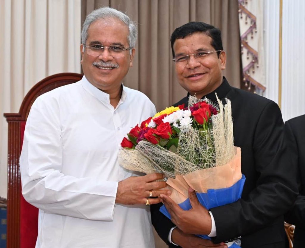 रायपुर, मुख्यमंत्री श्री भूपेश बघेल ने नवनियुक्त मंत्री श्री मोहन मरकाम को शपथ ग्रहण के बाद गुलदस्ता...